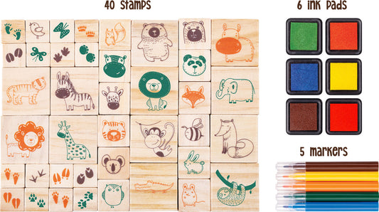 EDUCATIONAL COLOURS WOODEN STAMP SET 51PC ALL ABOUT ANIMALS