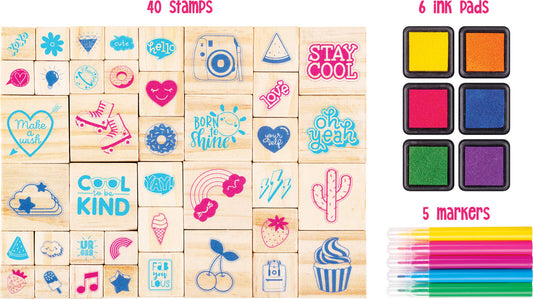 EDUCATIONAL COLOURS WOODEN STAMP SET 51PC GOOD VIBES
