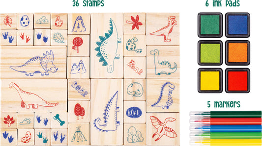 EDUCATIONAL COLOURS WOODEN STAMP SET 47PC DINOSAURS